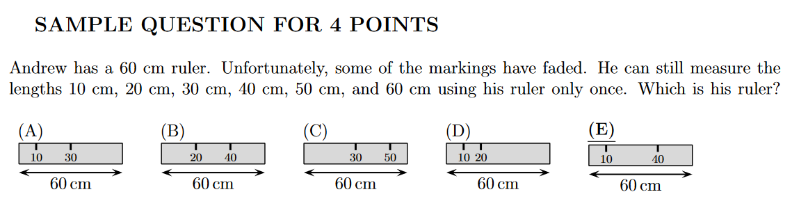 进入3年级和4年级考试后,袋鼠数学竞赛的试题开始包含测量工具(如尺子)的识别和使用。在这一阶段,学生不仅要识别这些工具,还要应用它们来解决涉及测量和计算的数学问题。